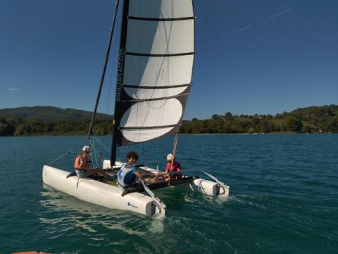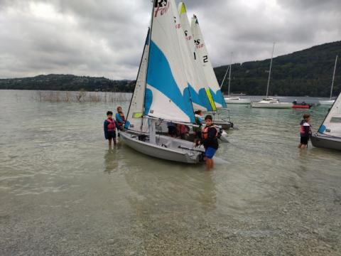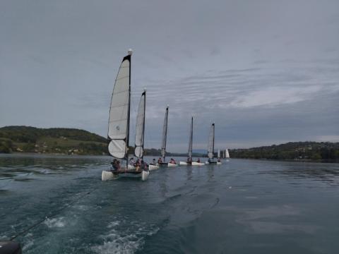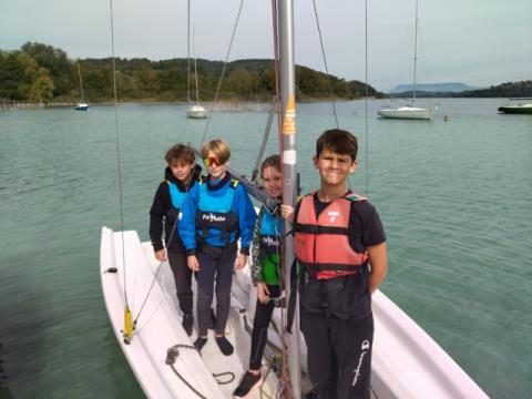 Dans le cadre du projet de classe "sport nature", les élèves de 6A ont bénéficié de 3 séances de voile au cours du mois de septembre sur la base nautique du YCGC à Charavines.